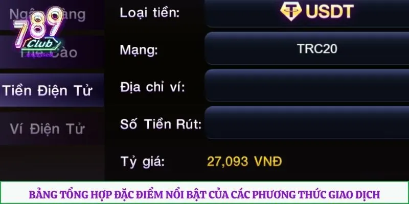 Phần thông tin dưới đây trong hướng dẫn 789club giúp hội viên có cái nhìn tổng quan về từng hình thức thanh toán. Thông qua bảng so sánh, tay chơi sẽ dễ dàng lựa chọn phương án phù hợp với thói quen giao dịch cá nhân.