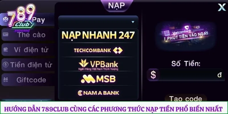 Hướng dẫn phương thức nạp tiền phổ biến tại 789club
