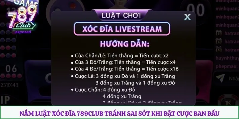 Luật chơi xoay quanh kết quả sau khi mở bát, dựa trên mặt đồng xu. Các cửa phổ biến gồm chẵn, lẻ, hoặc các tổ hợp đặc biệt theo số mặt. Bạn chọn cửa trước khi hệ thống lắc bát. Khi mở kết quả, cửa trúng sẽ nhận thưởng theo tỷ lệ đã niêm yết. Xóc đĩa 789club hỗ trợ hiển thị lịch sử rõ ràng, giúp việc phân tích thuận lợi hơn.